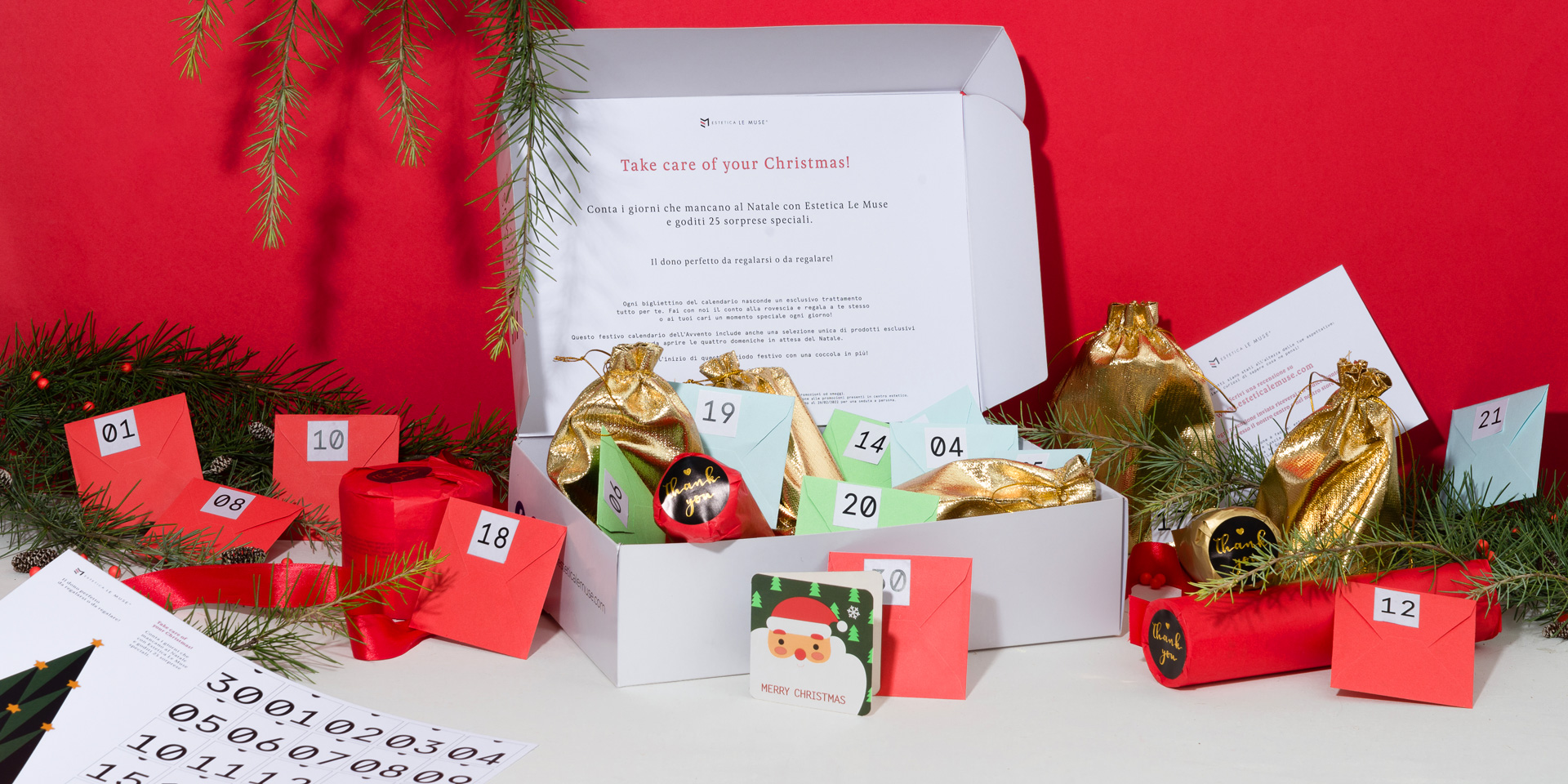 Il calendario dell’Avvento Estetica Le Muse include una selezione unica di piccoli articoli esclusivi, tra cui una sorpresa. L’Avvento inizia quattro settimane prima di Natale: regala ogni giorno una coccola speciale fino all’arrivo del momento più magico dell’anno.