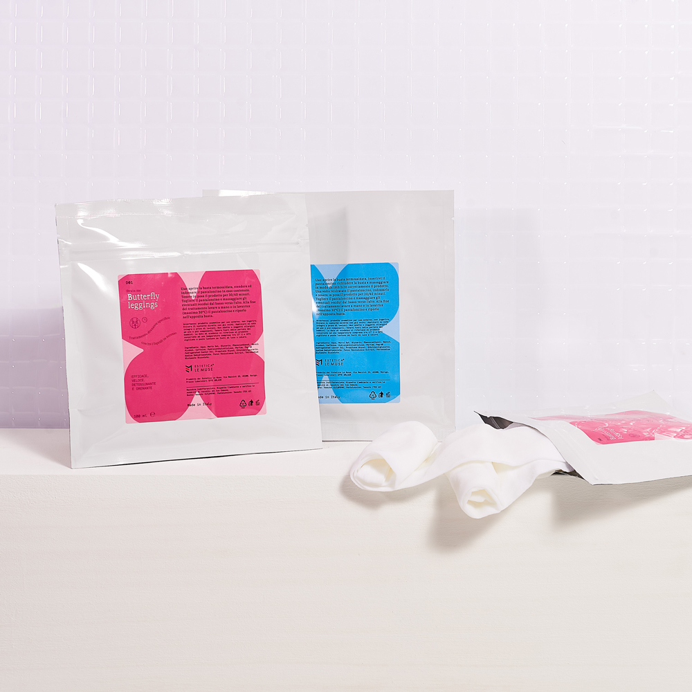 Per utilizzare le Butterfly Leggings occorre aprire la busta termosaldata, stendere ed indossare il pantaloncino in esso contenuto già imbibito. indossa il panta- cartene dato in dotazione,Tenere in posa il prodotto per 30/40 minuti. Togliere il pantaloncino e massaggiare gli eventuali residui dal basso verso l’alto. Alla fine del trattamento lavare a mano e far asciugare il pantaloncino e riporlo nell’apposita busta cosi sarà pronto per il prossimo trattamento ( ti basterà acquistare solo la busta ricarica).